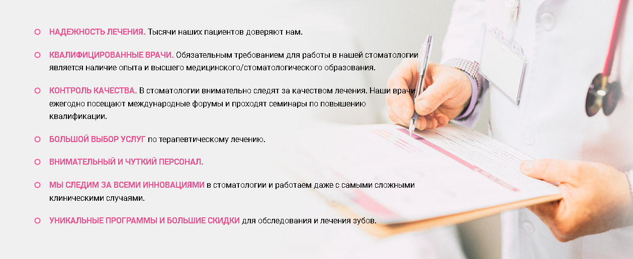 - лечение зубов (кариес, пульпит, периодонтит), в том числе под микроскопом