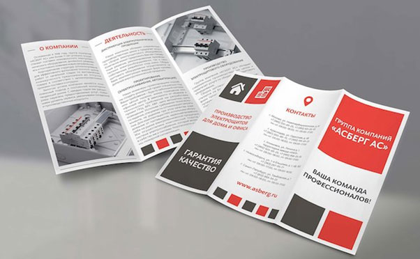 В данном случае в буклетах максимально ярко и интересно презентуют компанию. Например, описывают последние достижения, инновации производственного процесса, уникальность услуг и сервиса.